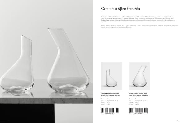 The lauded collaboration between Orrefors and the sommeliers of three-star chef Björn Frantzén is now extended to include a fiveglass range of exquisite and elegant bar glasses addressing all bar requirements. As with the rest of this magnificent tableware series, the bar glasses are specifically developed to meet the exceptional standards of form and function to match world-class food and drink experiences.