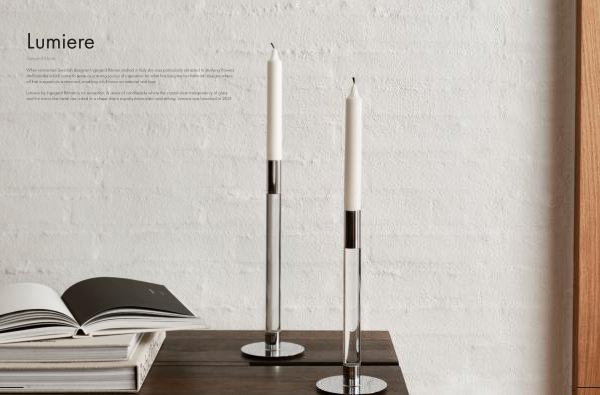Lumiere by Ingegerd Råman is no exception. A series of candlesticks where the crystal-clear transparency of glass and the mirror-like metal are united in a shape that is equally minimalistic and striking. Lumiere was launched in 2021.