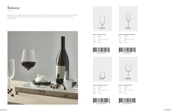 Balance is a series of glasses that work just as well in restaurants as at home. The large flat foot and thin leg give the series a contemporary light and elegant character. The cup’ s classic tulip shape highlights the aroma and taste of the drinks in the best way. The series was launched in 2022.
