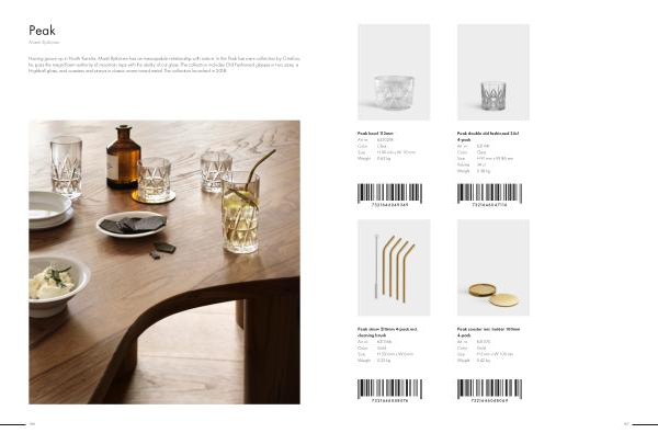 Having grown up in North Karelia, Martti Rytkönen has an inescapable relationship with nature. In the Peak barware collection by Orrefors, he pairs the magnificent authority of mountain tops with the ability of cut glass. The collection includes Old Fashioned glasses in two sizes, a Highball glass, and coasters and straws in classic warm-toned metal. The collection launched in 2018.