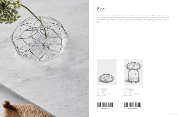 Bloom was born from a question: Can a vase be equally beautiful with or without flowers? Designer Lisa Hilland looked to geometry in nature for a shape that could combine simplicty with detail. The glass moves with suppleness toward the removable metal top. Both pieces reflect light, but in entirely different ways. The grid of the top also serves a purpose, if you want to place flowers inside Bloom: it allows you to shape your arrangements. You can even place a single plant in it, for an understated Scandinavian look. The series was launched in 2018.