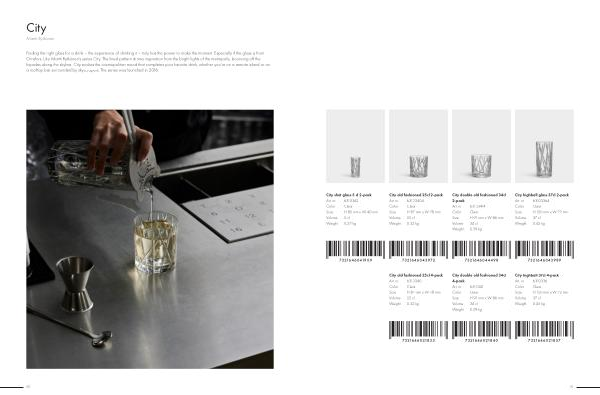 Finding the right glass for a drink – the experience of drinking it – truly has the power to make the moment. Especially if the glass is from Orrefors. Like Martti Rytkönen’ s series City. The lined pattern draws inspiration from the bright lights of the metropolis, bouncing off the façades along the skyline. City evokes the cosmopolitan mood that completes your favorite drink, whether you’ re on a remote island or on a rooftop bar surrounded by skyscrapers. The series was launched in 2016.