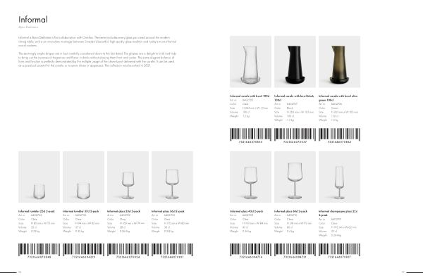 Informal is Björn Dahlström’ s first collaboration with Orrefors. The series includes every glass you need around the modern dining table, and is an innovative marriage between Sweden’ s beautiful, high-quality glass tradition and today’ s more informal social customs.