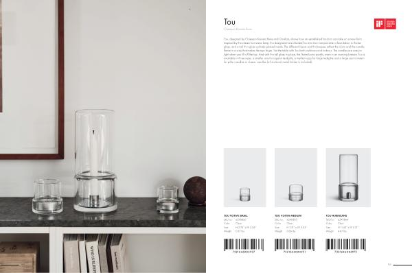 Tou , designed by Claesson Koivisto Rune and Orrefors , shows how an established function can take on a new form . Inspired by the classic hurricane lamp , the designers have divided Tou into two components : a foundation in thicker glass , and a tall , thin-glass cylinder placed inside . The different layers and thicknesses reflect the room and the candle flame in a way that makes the eye linger . Set the table with Tou both outdoors and indoors . The candles are easy to light when you lift off the top . And with the tall glass in place , the flame burns quietly , even in an evening breeze . Tou is available in three sizes : a smaller one for regular tealights , a medium-size for large tealights and a large storm lantern for pillar candles or classic candles ( a functional metal holder is included ).
