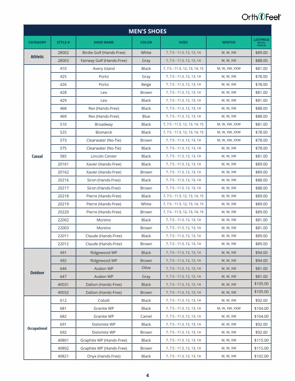 7, 7.5- 11.5, 12, 13, 14, 15 |