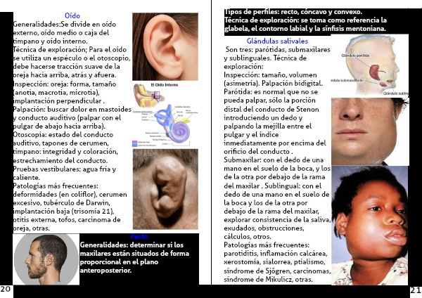 Inspección: oreja: forma, tamaño (anotia, macrotia, microtia), implantación perpendicular .