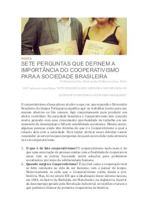 COOPERATIVISMO PARA A SOCIEDADE BRASILEIRA"