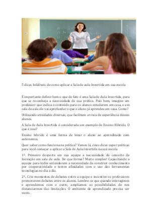 para você começar a aplicar a Sala de Aula Invertida na sua escola