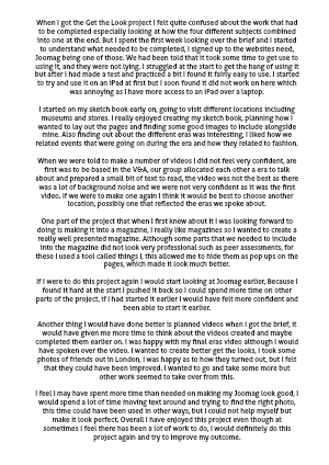 When I got the Get the Look project I felt quite confused about the work that had to be completed especially looking at how the four different subjects combined into one at the end. But I spent the first week looking over the brief and I started to understand what needed to be completed, I signed up to the websites need, Joomag being one of those. We had been told that it took some time to get use to using it, and they were not lying. I struggled at the start to get the hang of using it but after I had made a test and practiced a bit I found it fairly easy to use. I started to try and use it on an iPad at first but I soon found it did not work on here which was annoying as I have more access to an iPad over a laptop.