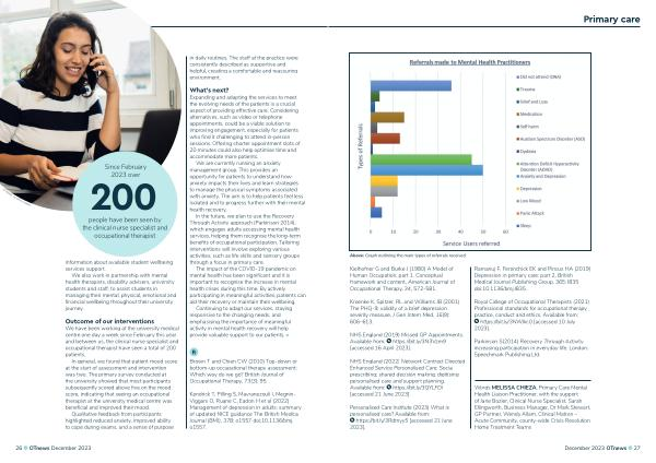 The impact of the COVID-19 pandemic on mental health has been significant and it is important to recognise the increase in mental health crises during this time . By actively participating in meaningful activities , patients can aid their recovery or maintain their wellbeing .