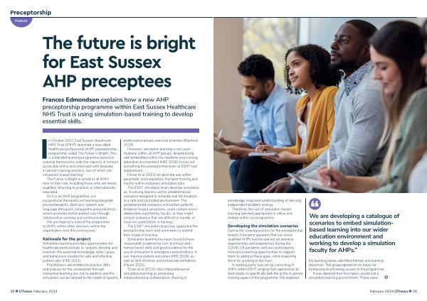 Frances Edmondson explains how a new AHP preceptorship programme within East Sussex Healthcare NHS Trust is using simulation-based training to develop essential skills .