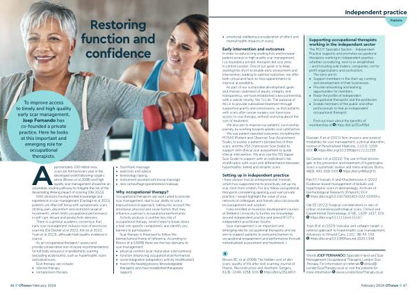 To improve access to timely and high quality early scar management , Joep Fernando has co-founded a private practice . Here he looks at this important and emerging role for occupational therapists .