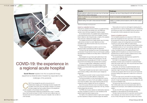 Impact on inpatient services From an inpatient perspective , as a response to COVID-19 , the teams were reorganised into three ‘ super teams ’: neuro ( covering the neurosciences , stroke and major trauma teams ); surgical ( orthopaedics , surgery and oncology teams ); and acute / medicine ( covering our acute care hub , DME and medical teams ).
