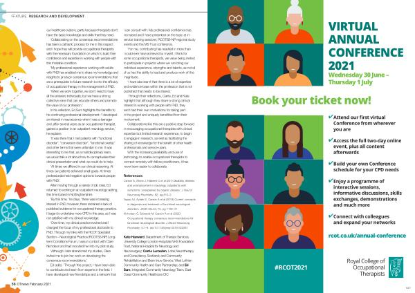 ‘ My professional experience working with adults with FND has enabled me to share my knowledge and insights to produce consensus recommendations that are a prerequisite to future research to into the efficacy of occupational therapy in the management of FND .