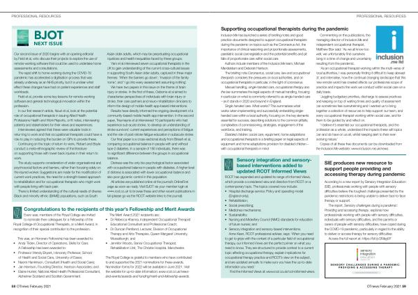 Sensory integration and sensorybased interventions added to updated RCOT Informed Views