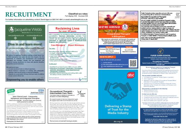 • Registration with the College of Occupational Therapists / British Association of Occupational Therapists