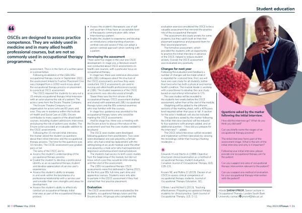 Krusen NE and Rollins D ( 2019 ). Design of an OSCE to assess clinical competence of occupational therapy students . Journal of Occupational Therapy Education , 3 ( 1 ).