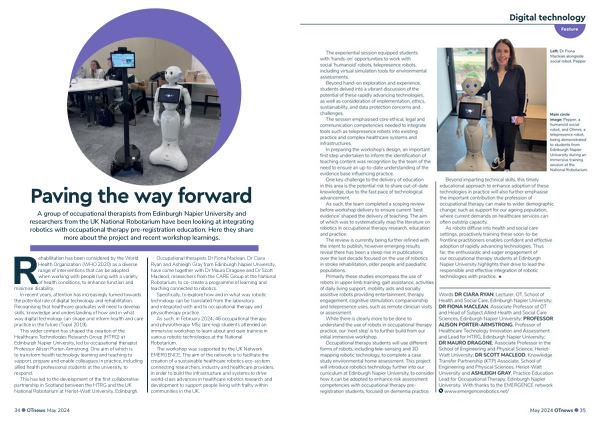 A group of occupational therapists from Edinburgh Napier University and researchers from the UK National Robotarium have been looking at integrating robotics with occupational therapy pre-registration education . Here they share more about the project and recent workshop learnings .