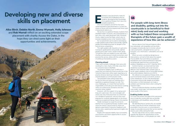 We are four occupational therapy students from Sheffield Hallam University who participated on a part-time , nine-week placement with a fantastic charity called Access the Dales , which aims to increase disabled access in the Yorkshire Dales .