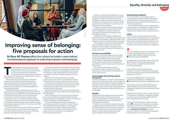 Dr Dave SP Thomas offers five actions to enable a more holistic , transformational approach to achieving inclusion and belonging .