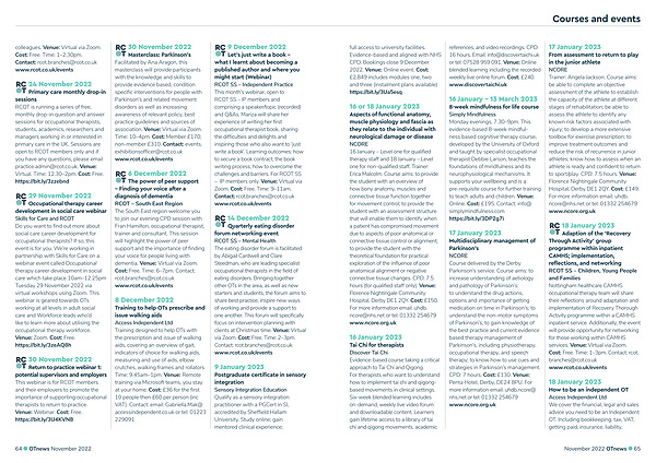 Adaption of the ‘ Recovery Through Activity ’ group programme within inpatient CAMHS ; implementation , reflections , and networking RCOT SS – Children , Young People and Families Nottingham healthcare CAMHS occupational therapy team will share their reflections around adaptation and implementation of Recovery Thorough Activity programme within a CAMHS inpatient service . Additionally , the event will provide opportunity for networking for those working within CAMHS services . Venue : Virtual via Zoom . Cost : Free . Time : 1 – 3pm . Contact : rcot . branches @ rcot . co . uk www . rcot . co . uk / events