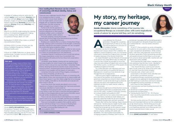 Words ODETH RICHARDSON , Head Occupational Therapist , Level 2 Rehabilitation , Freeman Hospital , Cultural Ambassador NUTH , Race Equalities Network Chair NUTH and Chair of Council RCOT / BAOT chair @ rcot . co . uk