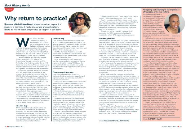 I believe OTs from ethnic minority backgrounds do require more targeted support and encouragement into the profession . I would like to be involved in encouraging return to practice and supporting returnees through their journey . I would like my story to show that they do not need to be fearful of the process .