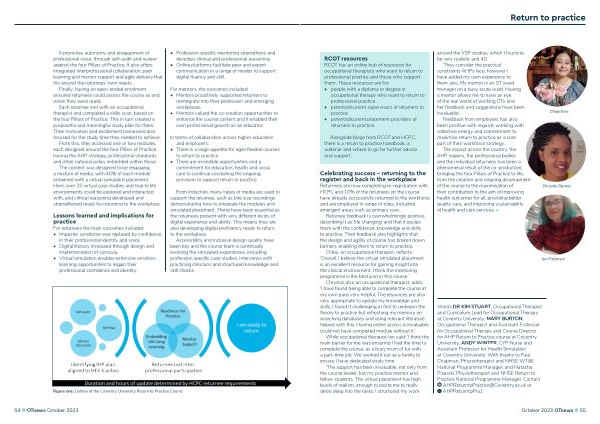 Words DR KIM STUART , Occupational Therapist and Curriculum Lead for Occupational Therapy at Coventry University ; MARY BURTON , Occupational Therapist and Assistant Professor for Occupational Therapy and Course Director for AHP Return to Practice course at Coventry University ; ANDY WINTER , CYP Nurse and Assistant Professor for Health Simulation at Coventry University . With thanks to Paul Chapman , Physiotherapist and NHSE WT & E National Programme Manager , and Natasha Pisarski , Physiotherapist and NHSE Return to Practice National Programme Manager . Contact AHPReturntoPractice @ Coventry . ac . uk or AHPReturntpPra1