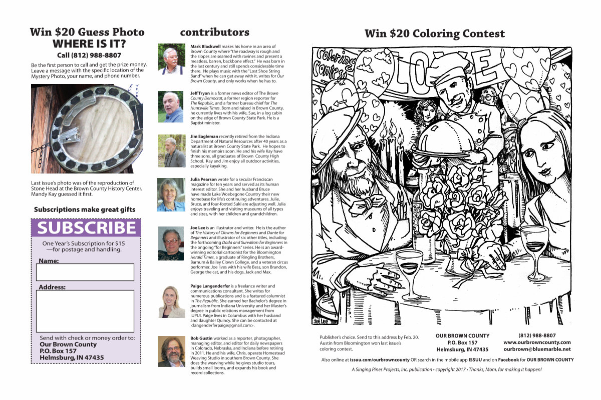 Also online at issuu. com / ourbrowncounty OR search in the mobile app ISSUU and on Facebook for OUR BROWN COUNTY A Singing Pines Projects, Inc. publication • copyright 2017 • Thanks, Mom, for making it happen!