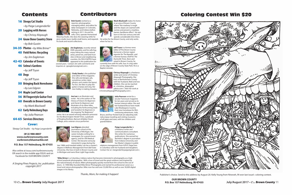 Publisher’ s choice. Send to this address by August 20. Kelly Young from Nineveh, IN won last issue’ s coloring contest.
