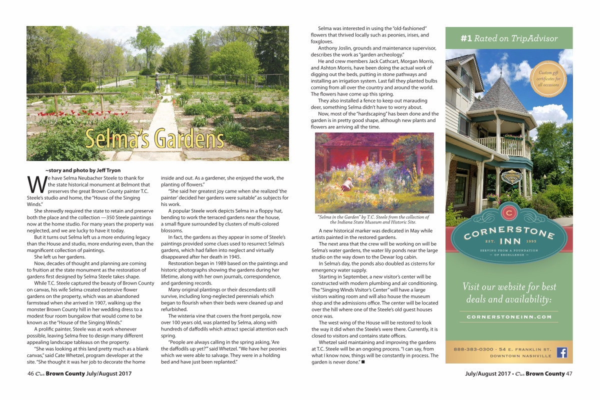 Whetzel said maintaining and improving the gardens at T. C. Steele will be an ongoing process.“ I can say, from what I know now, things will be constantly in process. The garden is never done.” •