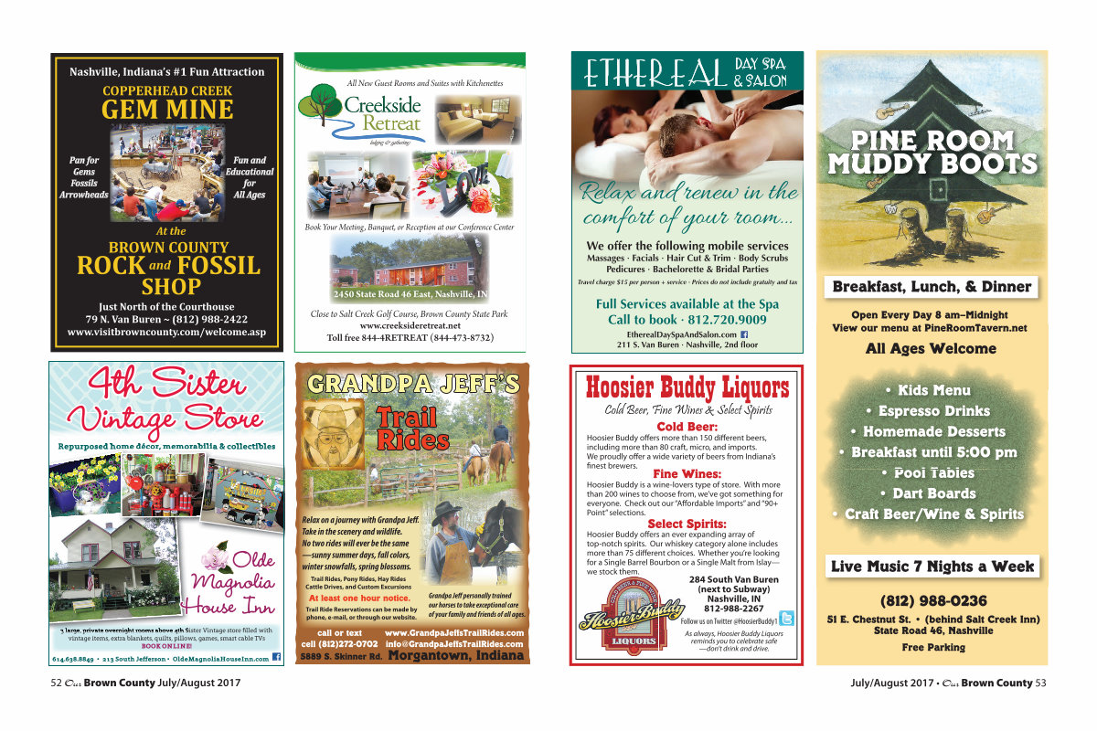 51 E. Chestnut St. •( behind Salt Creek Inn) State Road 46, Nashville