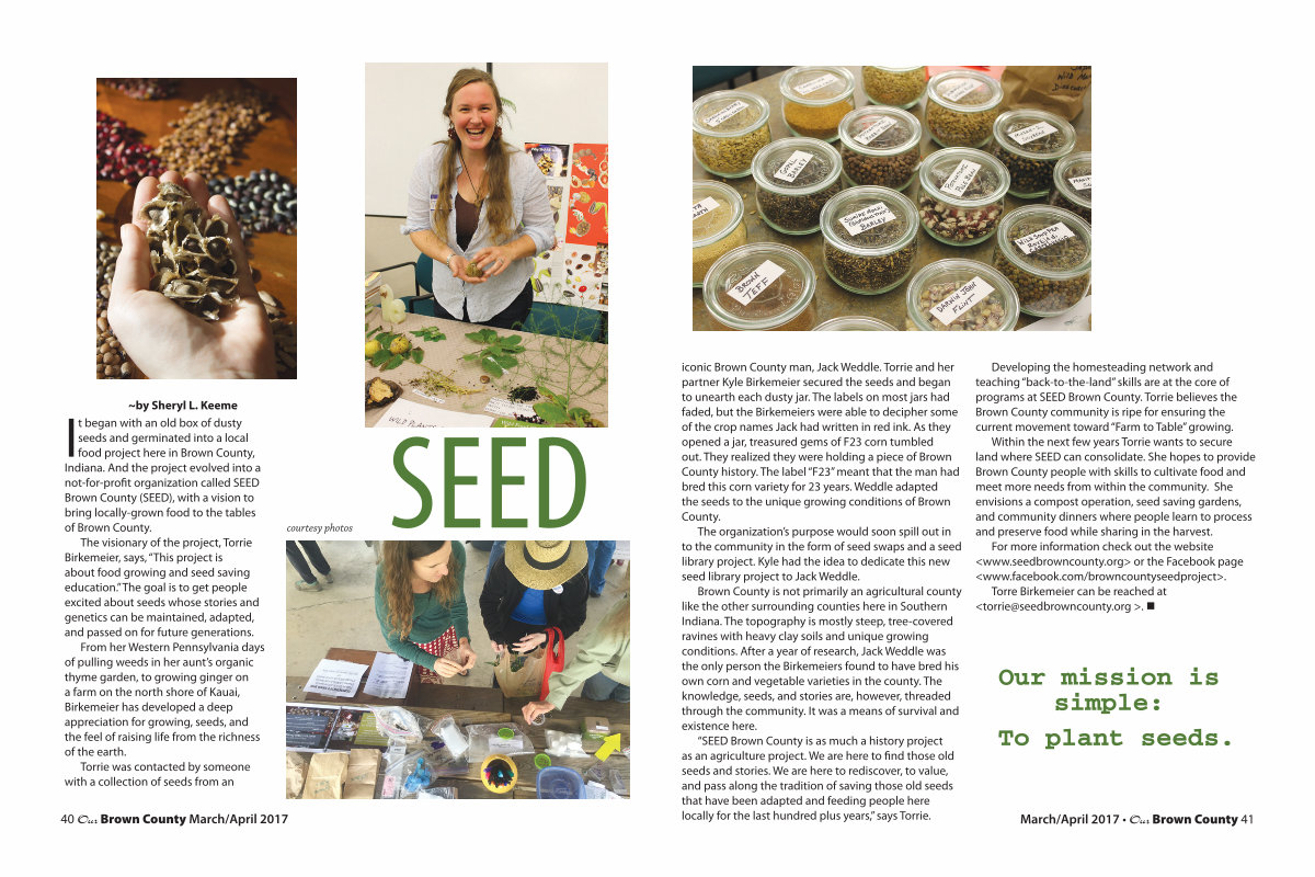 It began with an old box of dusty seeds and germinated into a local food project here in Brown County, Indiana. And the project evolved into a not-for-profit organization called SEED Brown County( SEED), with a vision to bring locally-grown food to the tables of Brown County.