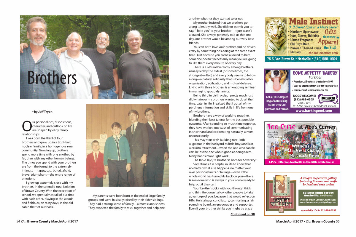 I grew up extremely close with my brothers, in the splendid rural isolation of Brown County. With the exception of school, we spent almost all of our time with each other, playing in the woods and fields, or, on rainy days, in the old cabin that sat out back.