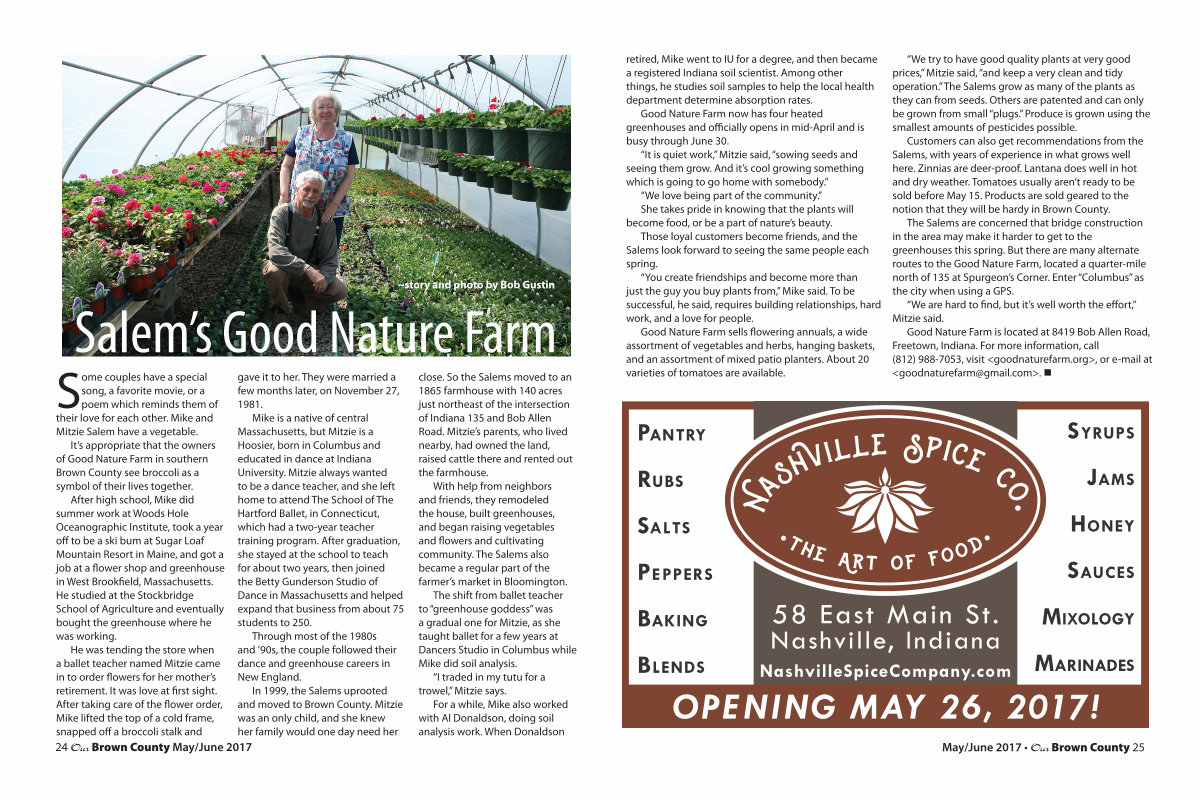 The Salems are concerned that bridge construction in the area may make it harder to get to the greenhouses this spring. But there are many alternate routes to the Good Nature Farm, located a quarter-mile north of 135 at Spurgeon’ s Corner. Enter“ Columbus” as the city when using a GPS.