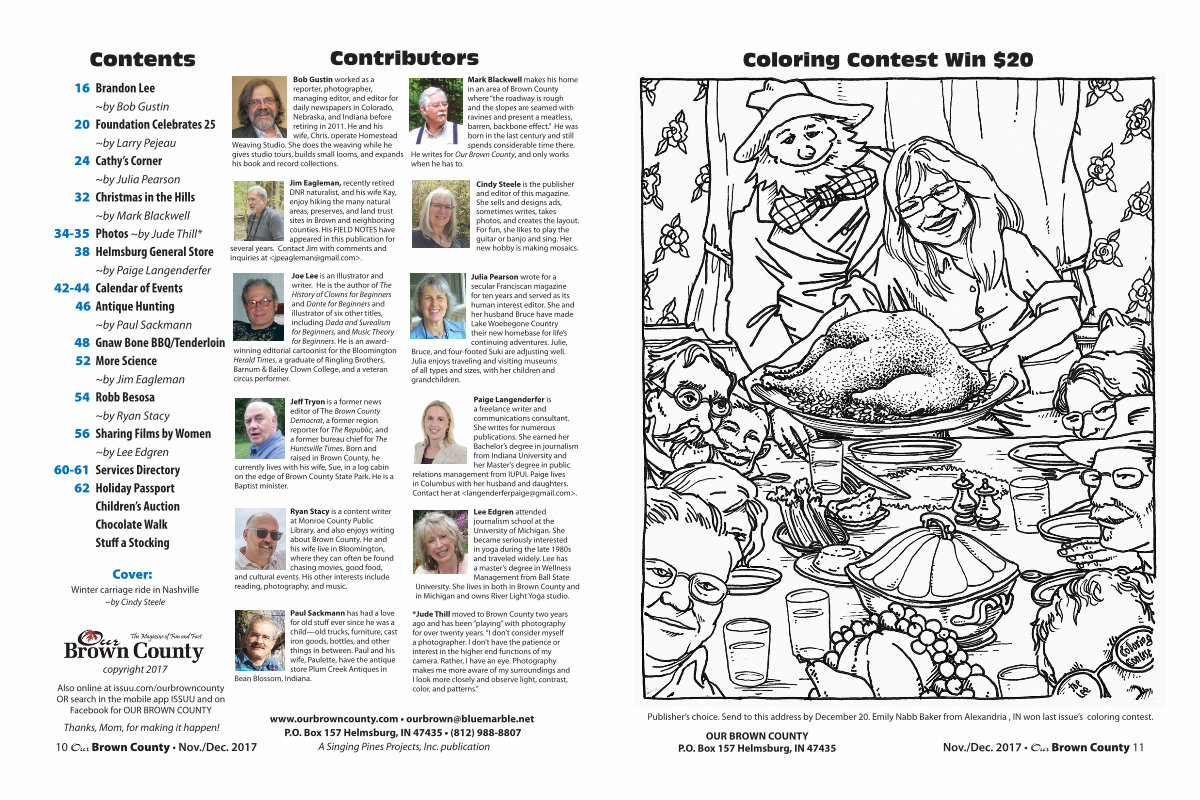 www. ourbrowncounty. com • ourbrown @ bluemarble. net P. O. Box 157 Helmsburg, IN 47435 •( 812) 988-8807 A Singing Pines Projects, Inc. publication