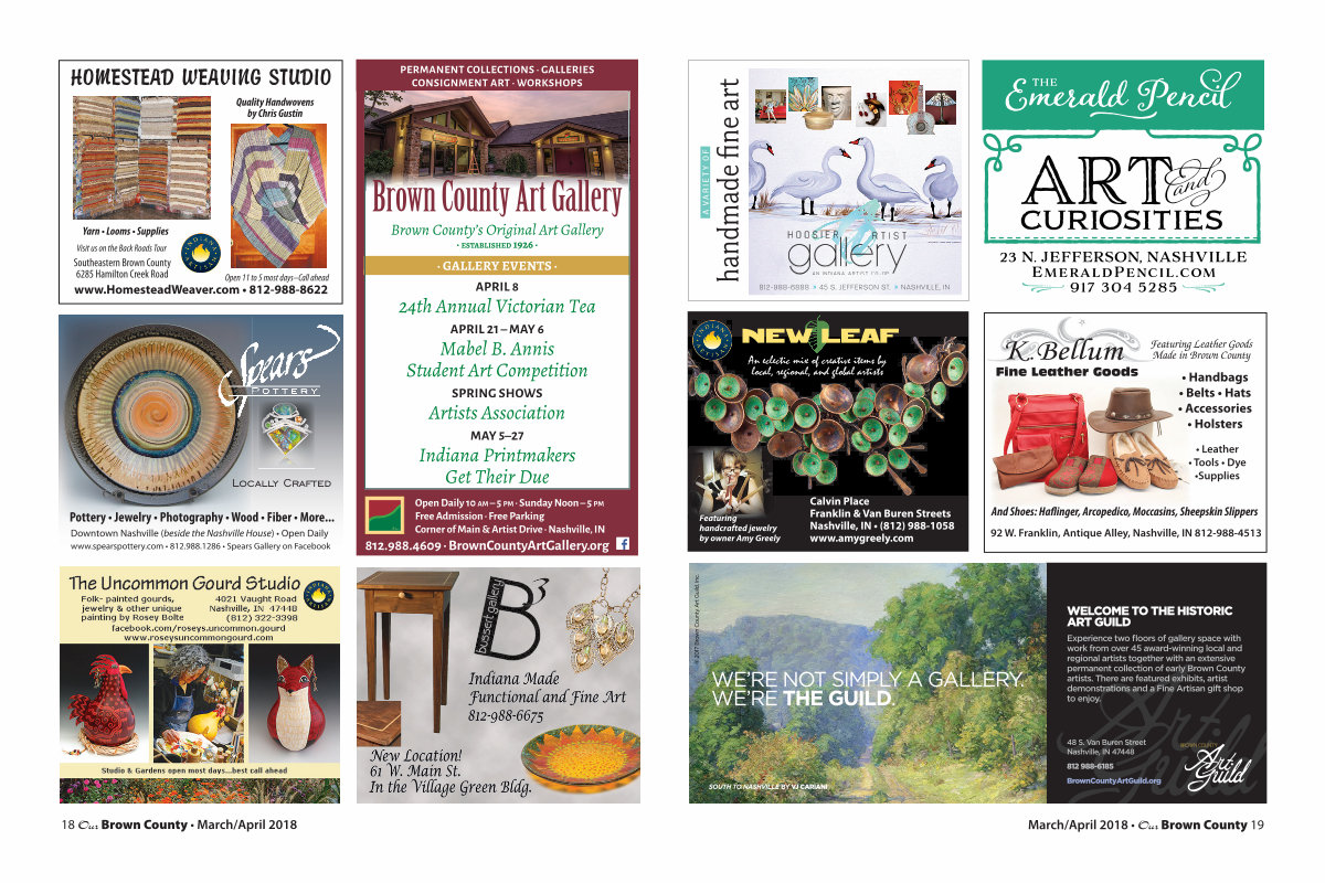 Experience two floors of gallery space with work from over 45 award-winning local and regional artists together with an extensive permanent collection of early Brown County artists. There are featured exhibits, artist demonstrations and a Fine Artisan gift shop to enjoy.