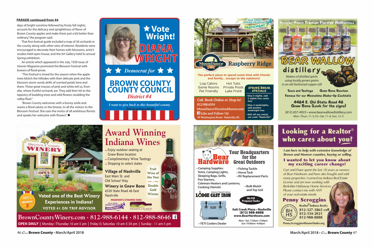 “ Brown County welcomes with a bonny smile and waves a floral salute, in the breeze, to all the visitors to the Blossom Festival. She uses the motto of all ambitious florists and speaks her welcome with flowers.” •