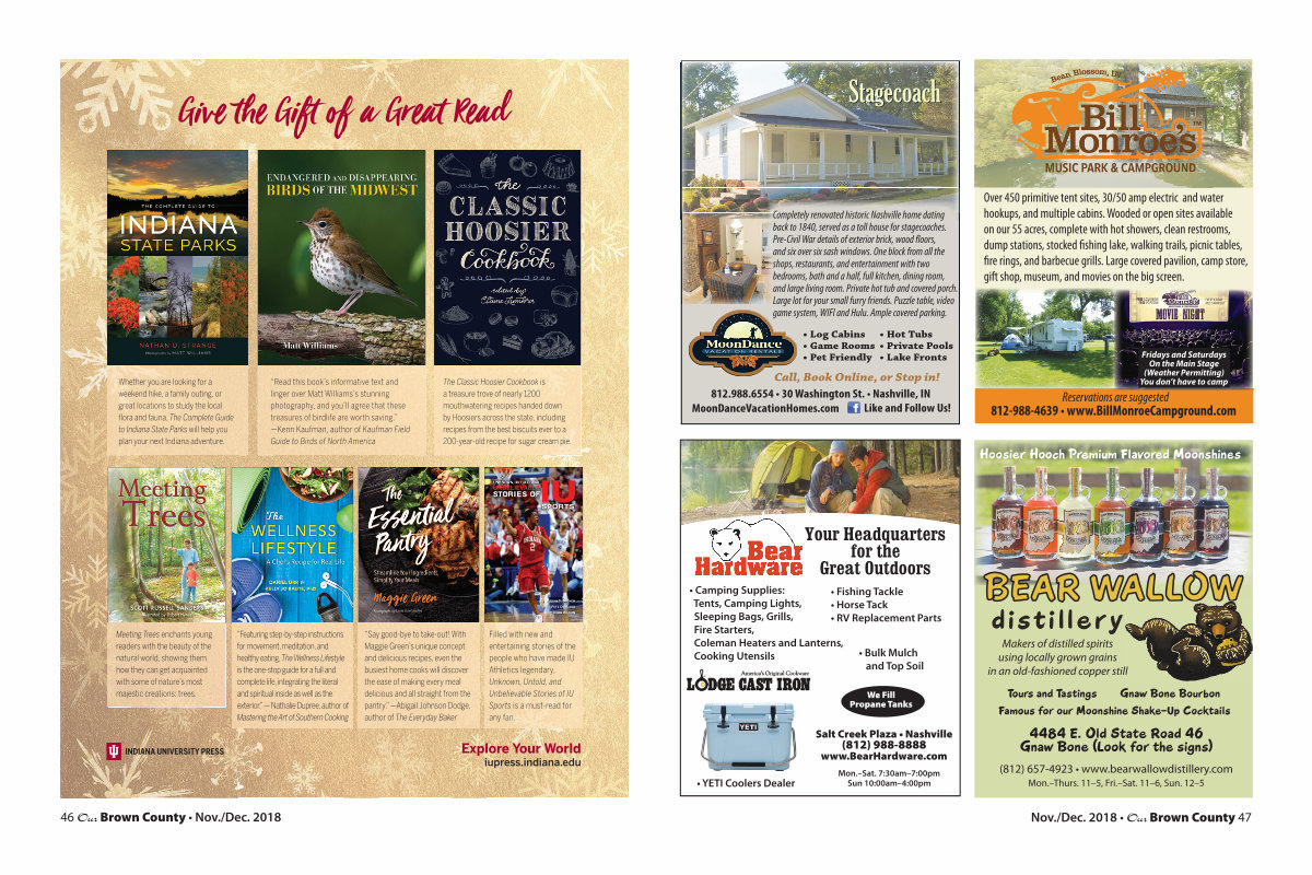 Call, Book Online, or Stop in! 812.988.6554 • 30 Washington St. • Nashville, IN MoonDanceVacationHomes. com Like and Follow Us!
