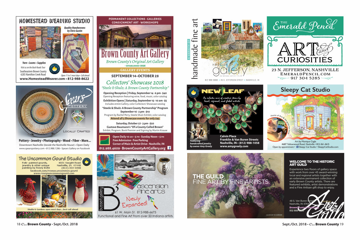 · GALLERY EVENTS · SEPTEMBER 14 – OCTOBER 28 Collectors’ Showcase 2018“ Steele & Shulz: A Brown County Partnership”