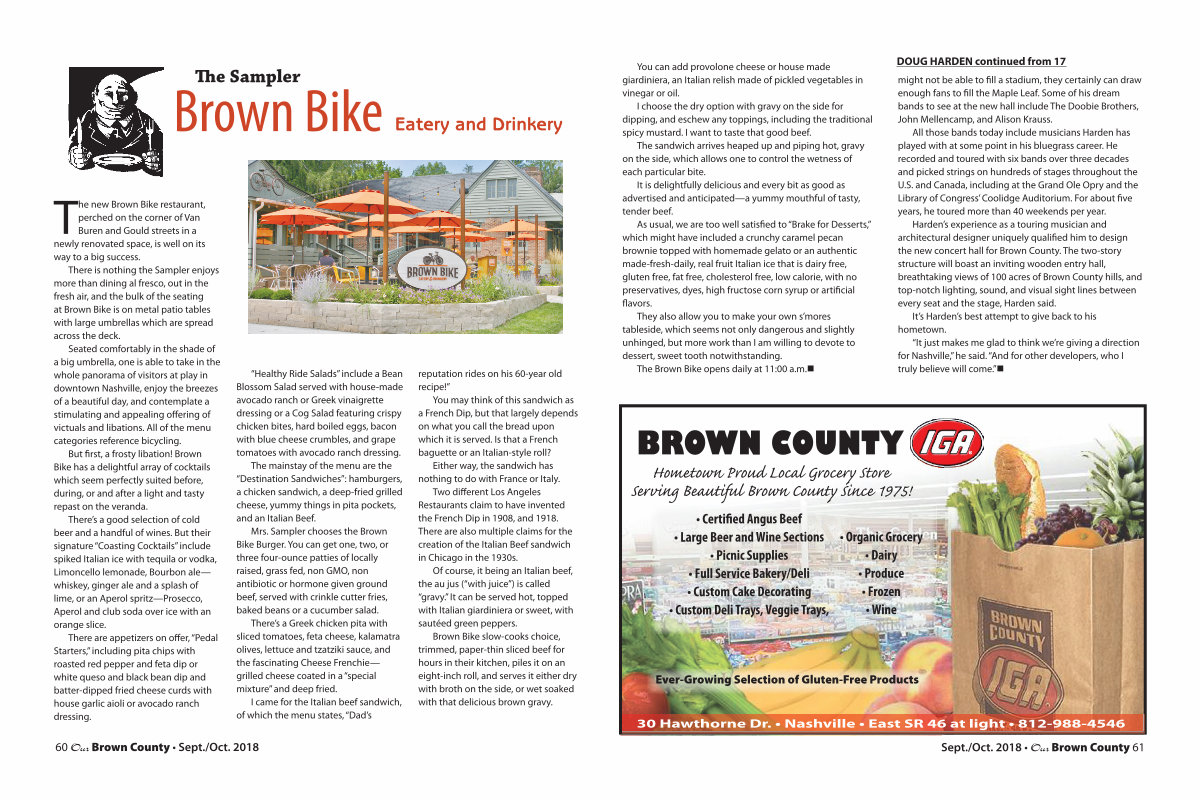 Seated comfortably in the shade of a big umbrella, one is able to take in the whole panorama of visitors at play in downtown Nashville, enjoy the breezes of a beautiful day, and contemplate a stimulating and appealing offering of victuals and libations. All of the menu categories reference bicycling.
