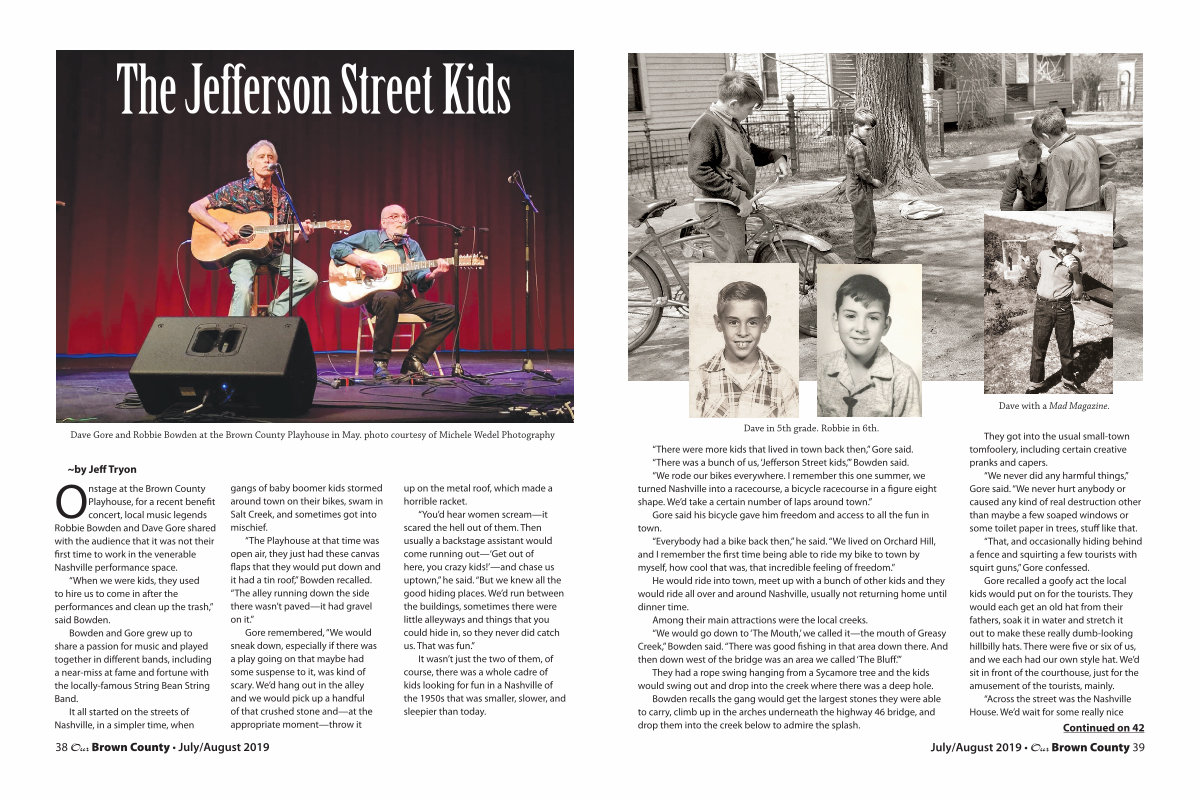 Onstage at the Brown County Playhouse, for a recent benefit concert, local music legends Robbie Bowden and Dave Gore shared with the audience that it was not their first time to work in the venerable Nashville performance space.