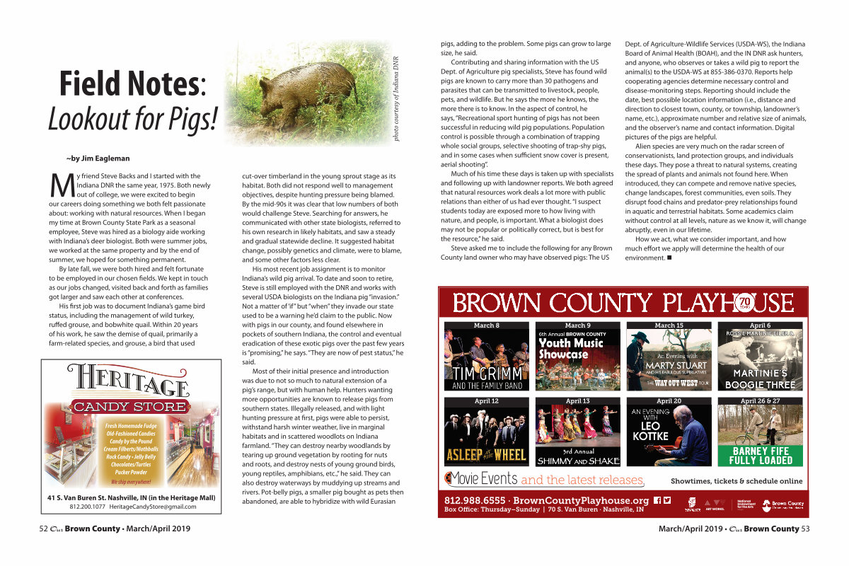 Steve asked me to include the following for any Brown County land owner who may have observed pigs: The US