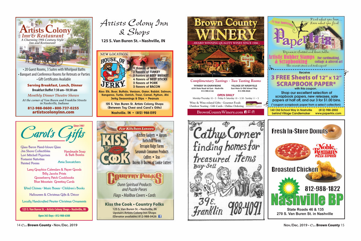 125 S. Van Buren St. • Artists Colony Shops • Nashville, IN Open 363 Days • 812-988-6388