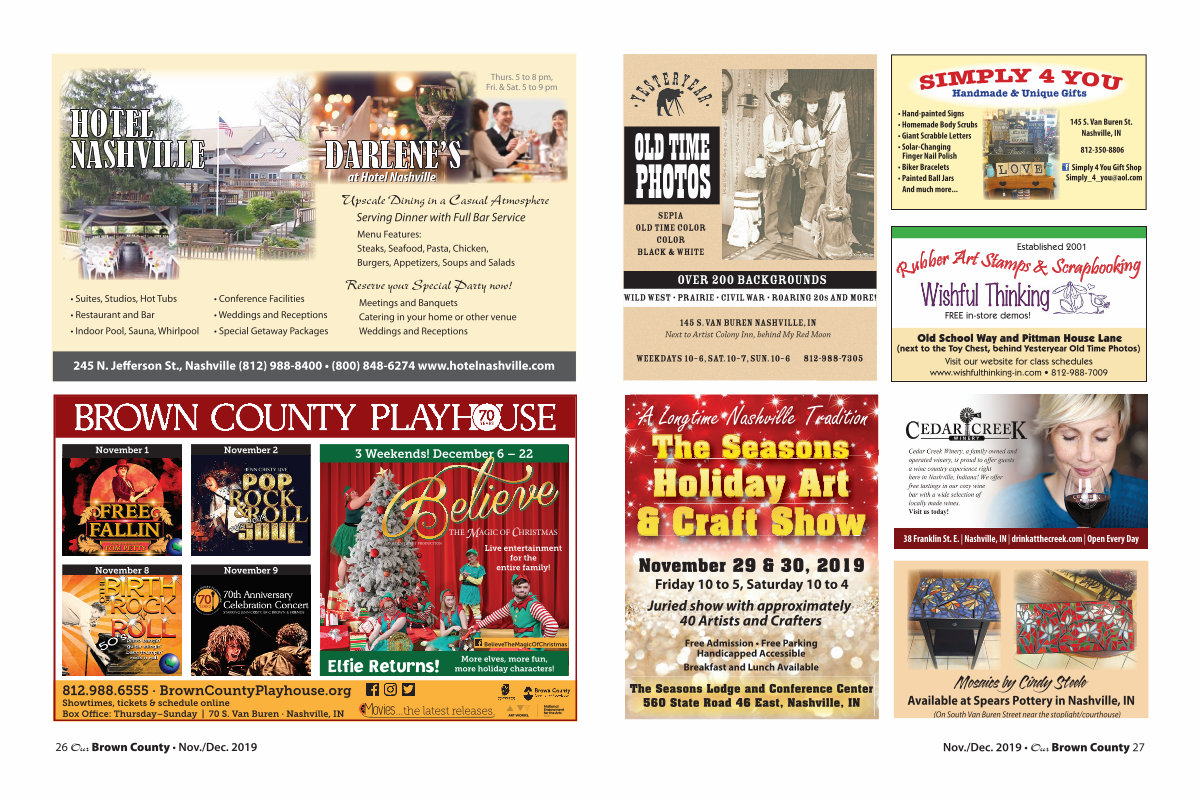 245 N. Jefferson St., Nashville( 812) 988-8400 •( 800) 848-6274 www. hotelnashville. com