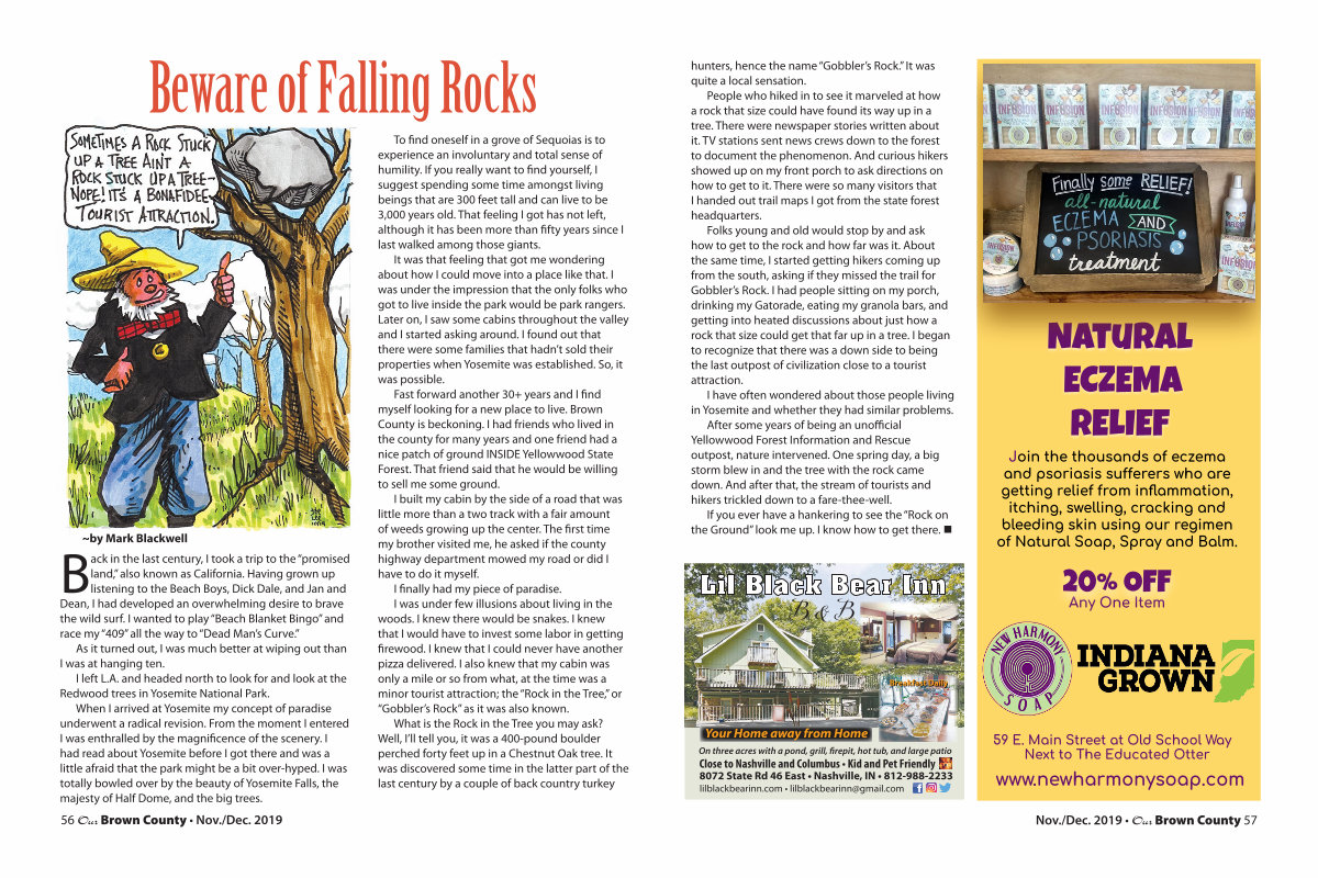 After some years of being an unofficial Yellowwood Forest Information and Rescue outpost, nature intervened. One spring day, a big storm blew in and the tree with the rock came down. And after that, the stream of tourists and hikers trickled down to a fare-thee-well.