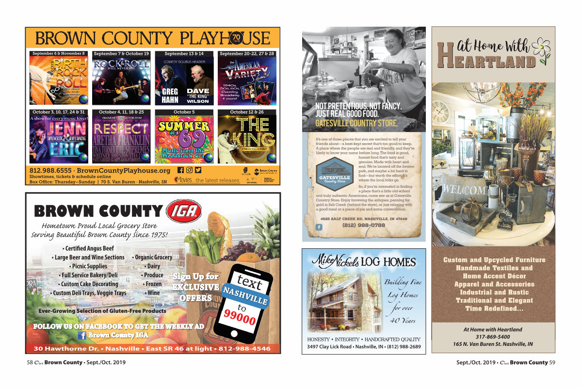 30 Hawthorne Dr. • Nashville • East SR 46 at light • 812-988-4546 58 Our Brown County • Sept./ Oct. 2019