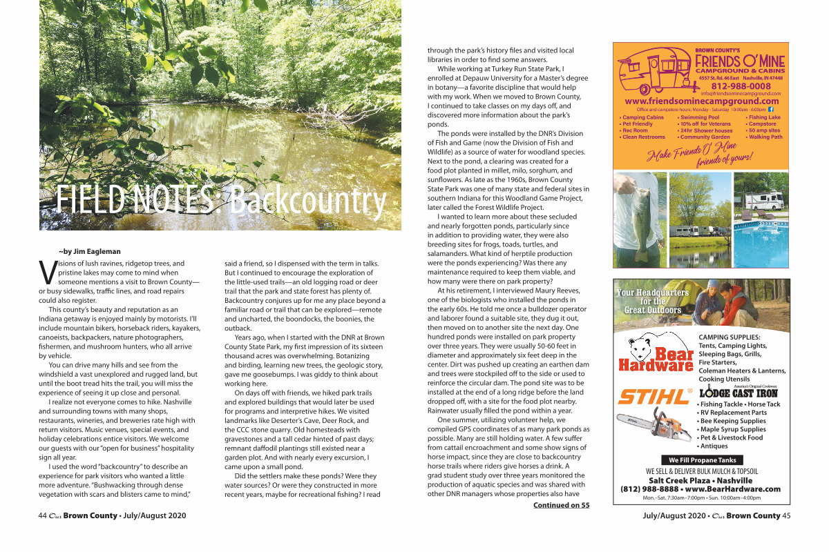 While working at Turkey Run State Park, I enrolled at Depauw University for a Master’ s degree in botany— a favorite discipline that would help with my work. When we moved to Brown County, I continued to take classes on my days off, and discovered more information about the park’ s ponds.