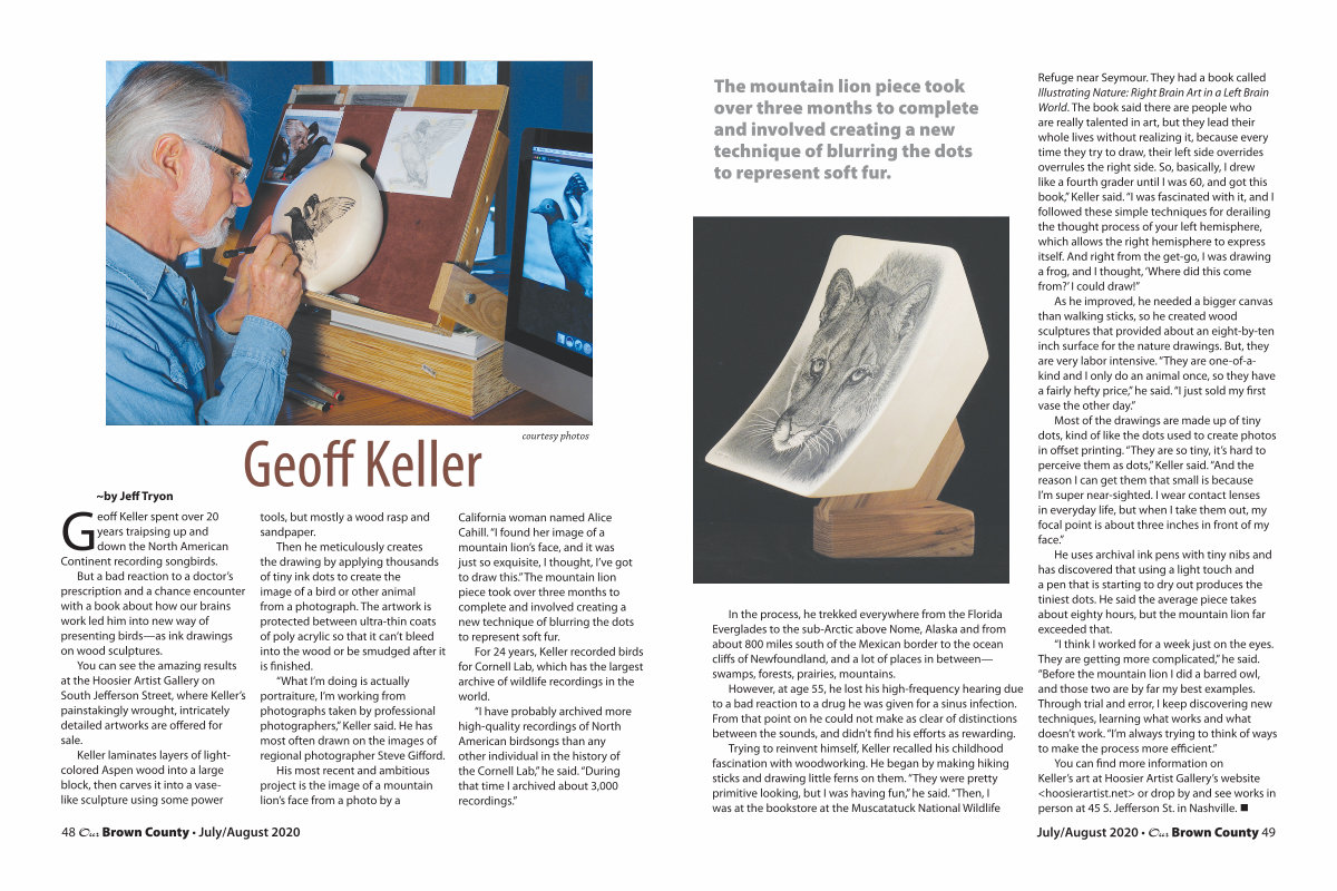 You can find more information on Keller’ s art at Hoosier Artist Gallery’ s website < hoosierartist. net > or drop by and see works in person at 45 S. Jefferson St. in Nashville. •