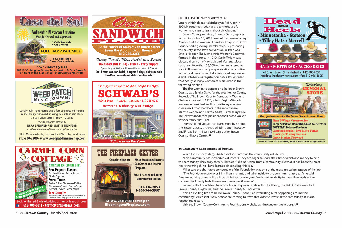 Interested individuals can learn more by visiting the Brown County archives, which is open Tuesday and Friday from 11 a. m. to 4 p. m. at the Brown County History Center. •